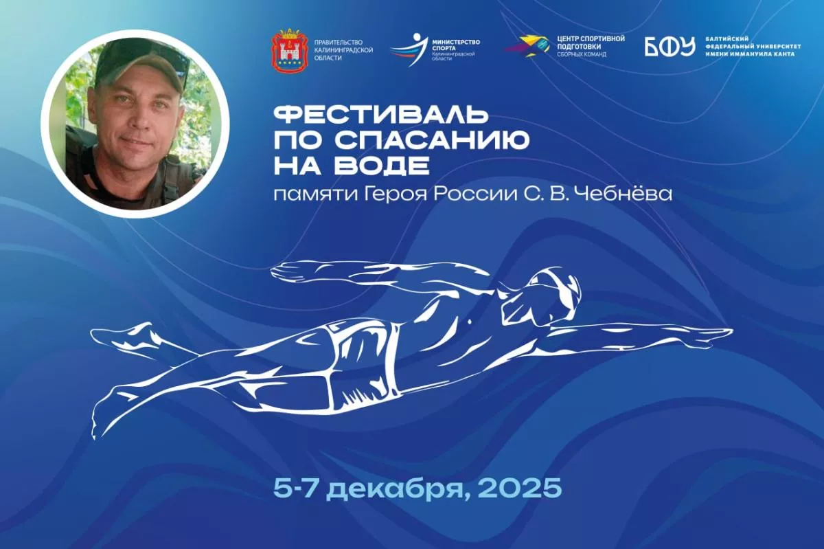 5–7 декабря 2025 года на базе БФУ им. И. Канта и ФОК «Центр спорта» пройдет Фестиваль по спасению на воде памяти Героя России С. В. Чебнева. Мероприятие включает спортивную и образовательную программы.