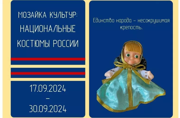 С 17 по 30 сентября 2024 года в БФУ им. И. Канта пройдет выставка «Мозаика культур: национальные костюмы России». Это совместный проект Музея Советского детства, детского сада № 20 и Университета Детства.