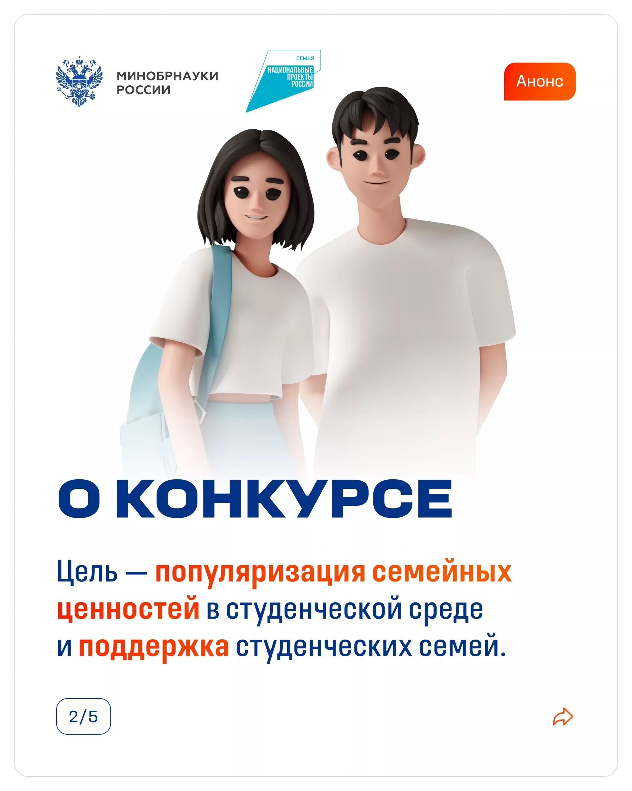 Конкурс «Студенческие семьи России» проводится Минобрнауки России совместно с Тамбовским государственным университетом имени Г. Р. Державина в целях поддержки студенческих семей и популяризации семейных ценностей в студенческой среде.