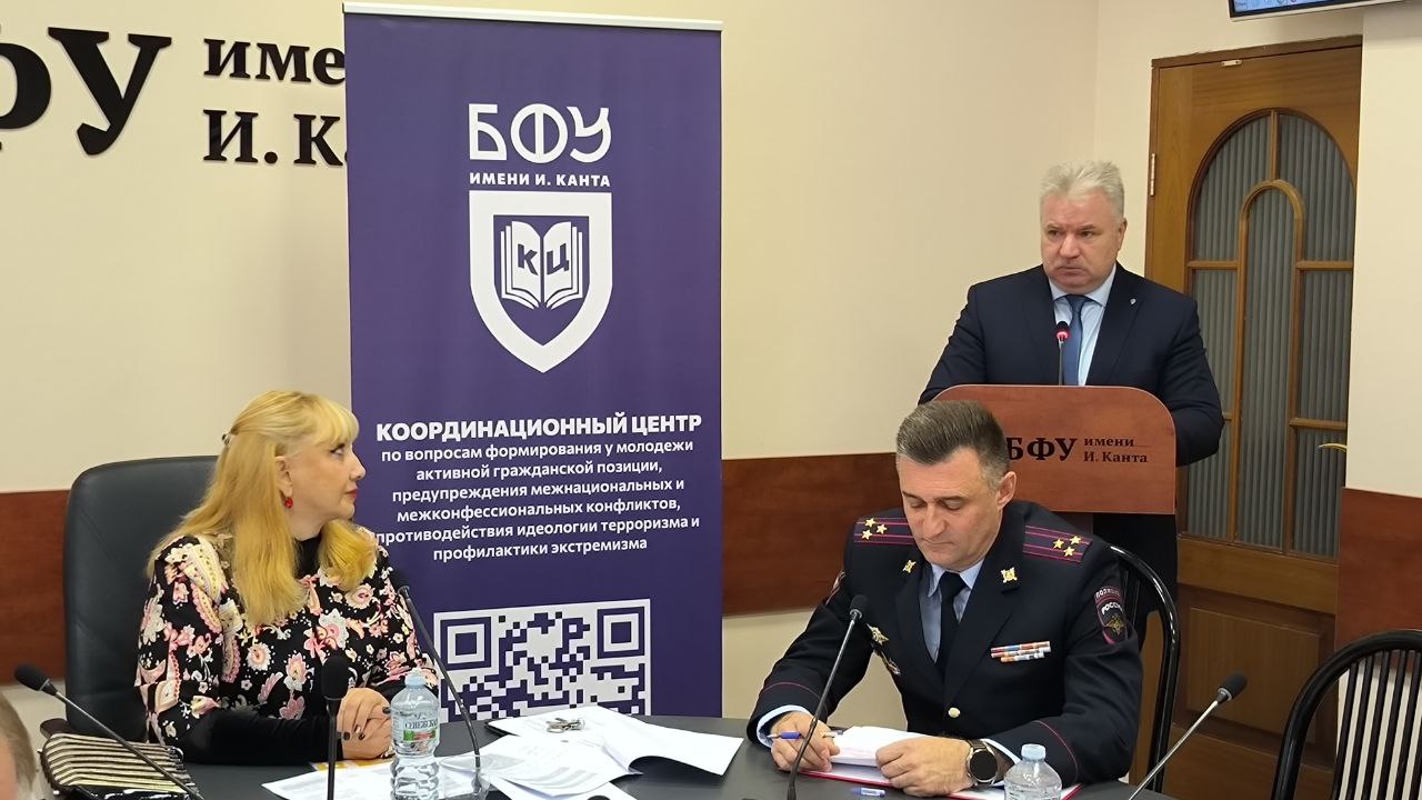 Открыли работу конференции выступлениями с приветственными словами начальник Калининградского филиала Санкт-Петербургского университета МВД России, полковник полиции Игорь Горковенко, руководитель Аппарата антитеррористической комиссии в Калининградской области Артем Клушин, а также начальник отдела комплексной безопасности Западного филиала РАНХиГС Станислав Шевчук. От лица университета участников конференции поприветствовал и пожелал конструктивной работы заместитель руководителя по науке Института управления и территориального развития Роман Смелик.