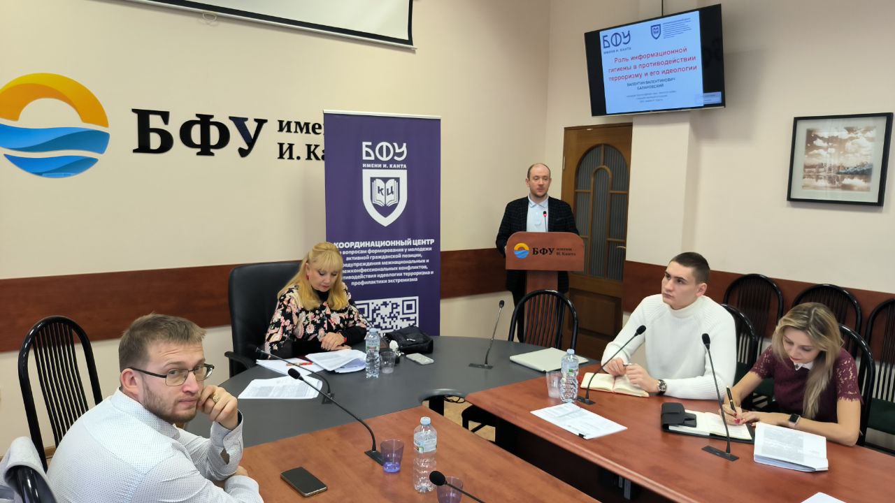 Вторая половина первого дня работы конференции была в большей степени посвящена вопросам информационной гигиены и профилактики терроризма в социальных сетях. С докладами по данной проблематике выступили специалисты Координационного центра БФУ Михаил Болвачев и Валентин Балановский, а также специалист Координационного центра КФУ Дмитрий Сметанин.