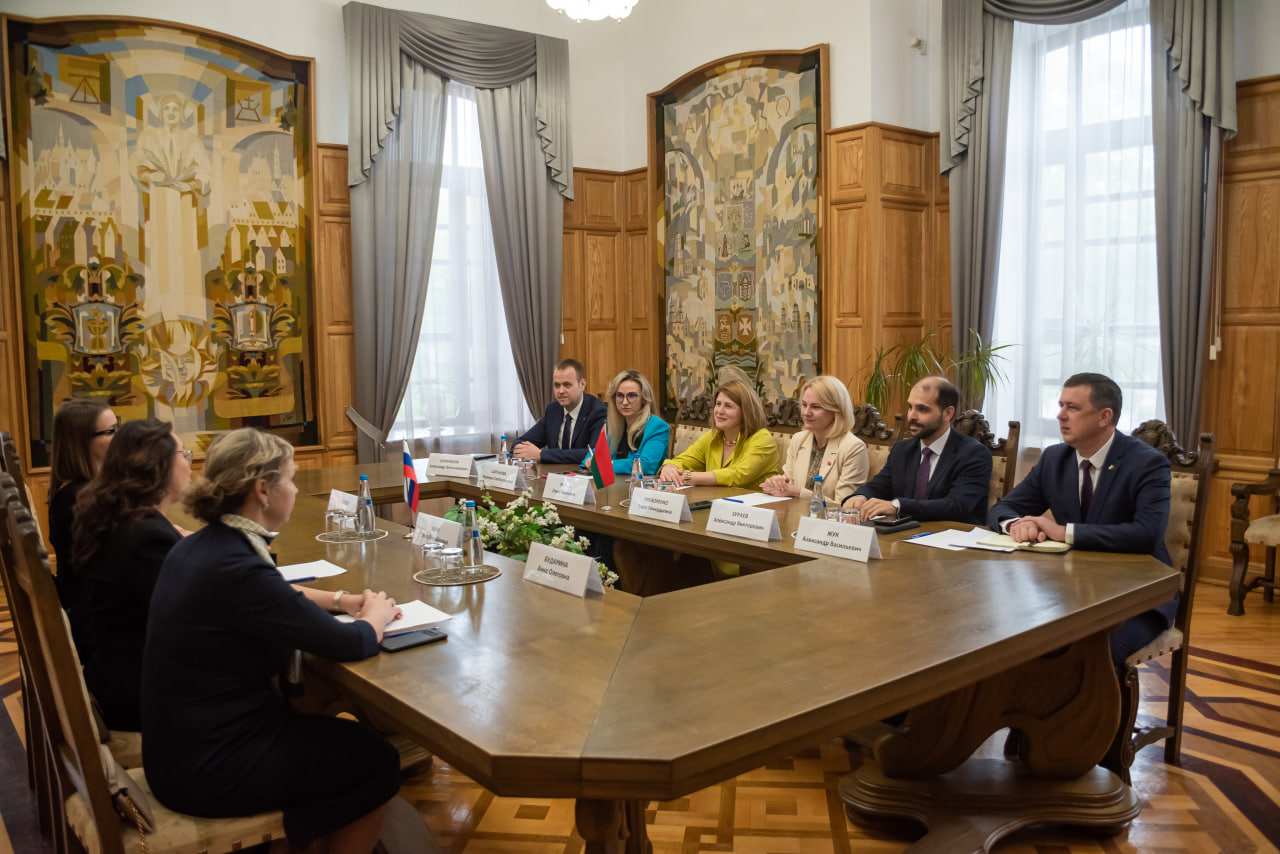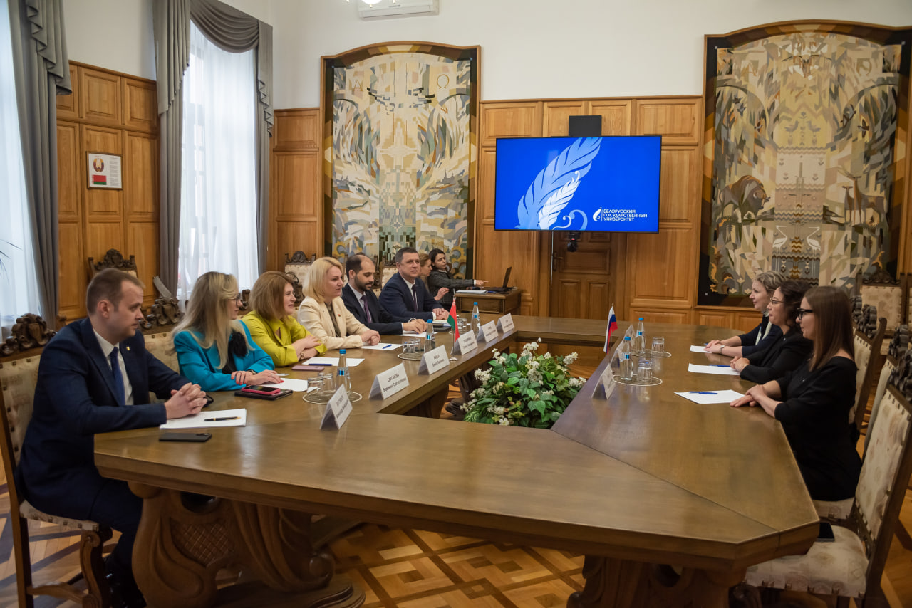 Делегация БФУ им. И. Канта в составе проректора по молодежной политике и международному образованию Ольги Ким, директора международного офиса Дарьи Гербер и руководителя ОНК «Институт образования и гуманитарных наук» Анны Будариной посетила БГУ в Минске, где провели встречу с коллегами. С белорусской стороны присутствовали проректор по учебной работе и образовательным инновациям БГУ Олеся Прохоренко, начальники главного управления образовательной деятельности Ольга Рында и управления международных связей Александр Жук, а также деканы факультетов.