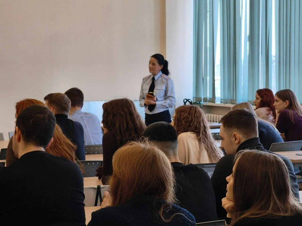 Перед студентами выступила заместитель начальника Управления по контролю за оборотом наркотиков УМВД России по Калининградской области Олеся Кузьма. В рамках встречи молодежь узнала, как на самом деле выглядят «черные схемы» вовлечения в наркоторговлю. Разбор психологических ловушек, которые ежедневно расставляют кураторы закладок перед неокрепшими умами, заставил аудиторию замереть.