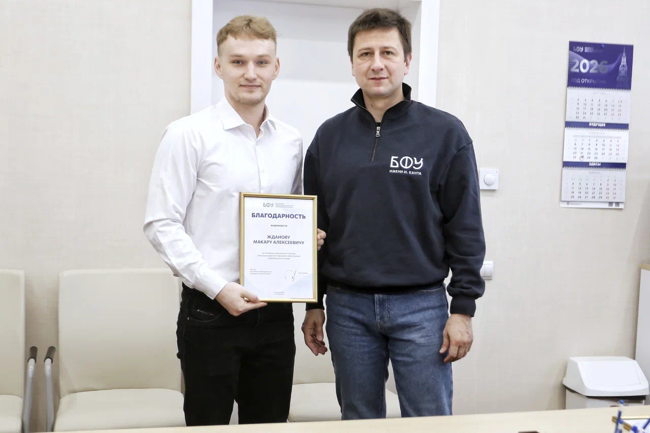 28 апреля ректор БФУ им. И. Канта Максим Демин вручил благодарности студентам-активистам водно-спасательного клуба «Кантиана Акваспас». Уже четыре года университет совместно с Центром специальной подготовки «Акваспас» готовят профессиональных спасателей на воде. Члены клуба не только участвуют в соревнованиях по водно-спасательному многоборью, но и работают на водных объектах Калининградской области.