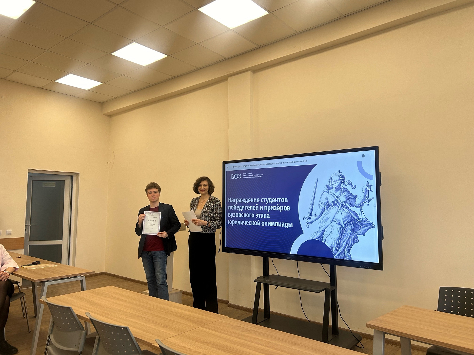 15 апреля состоялась лекция-дискуссия с юристом-практиком Дмитрием Барыкиным и церемония награждения победителей и призеров вузовского этапа юридической олимпиады.