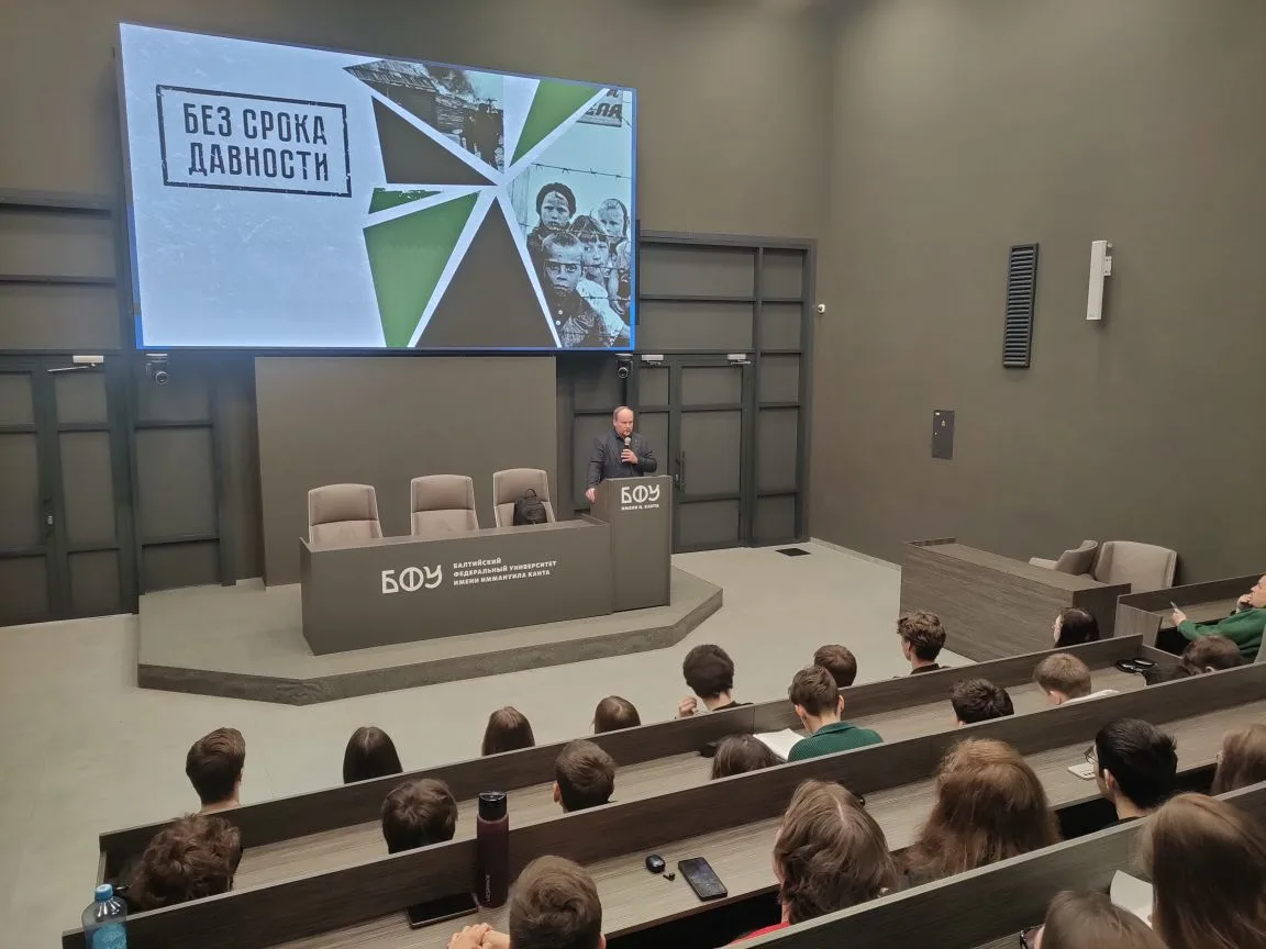 Накануне Дня единых действий в память о геноциде советского народа нацистами и их пособниками в годы Великой Отечественной войны 1941-1945 годов в БФУ имени И. Канта прошел кинопоказ. Студенты Института высоких технологий увидели документально-игровой фильм «Без срока давности. Рабы с востока», снятый несколько лет назад о нацистских преступлениях в Восточной Пруссии.