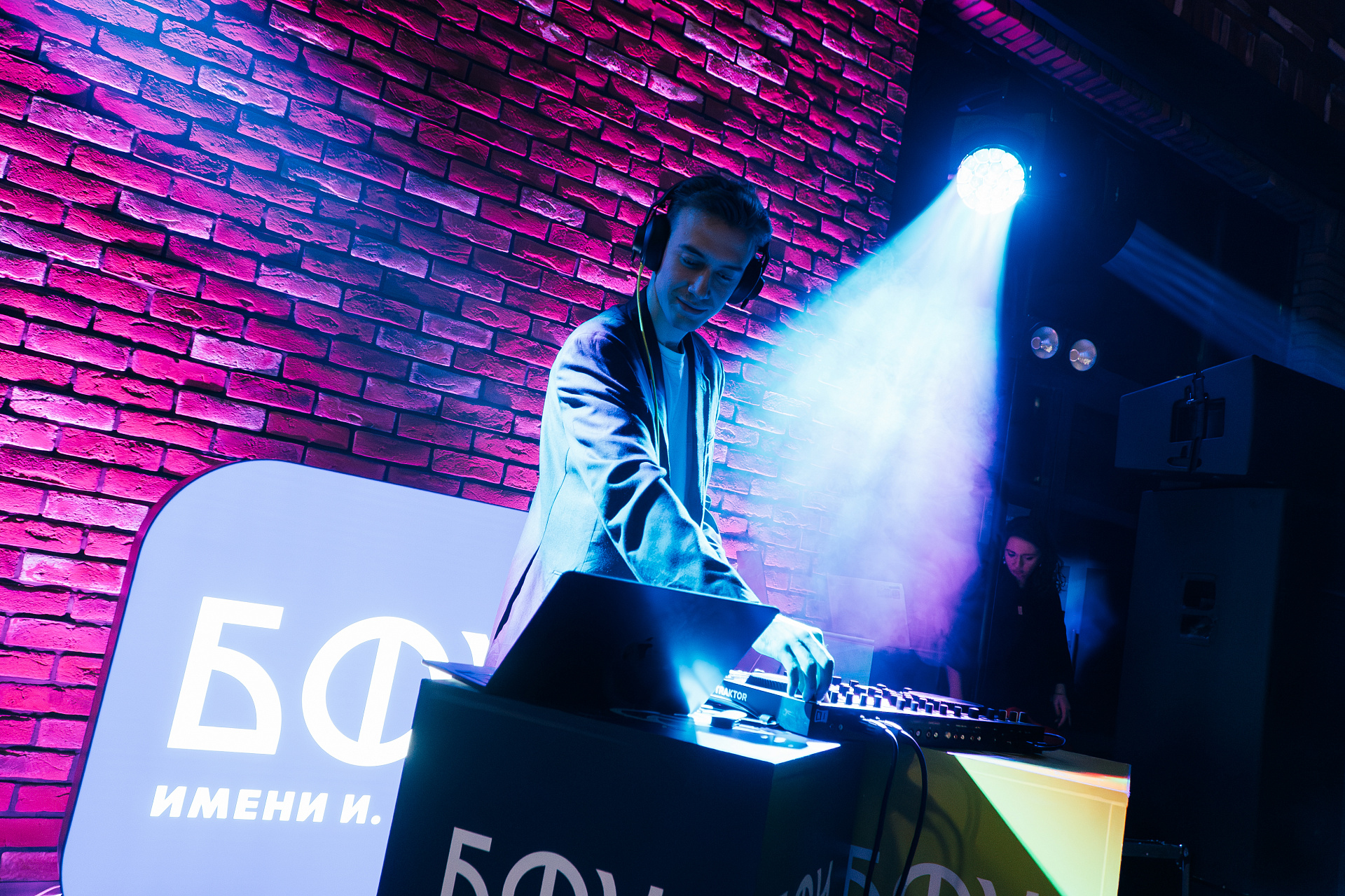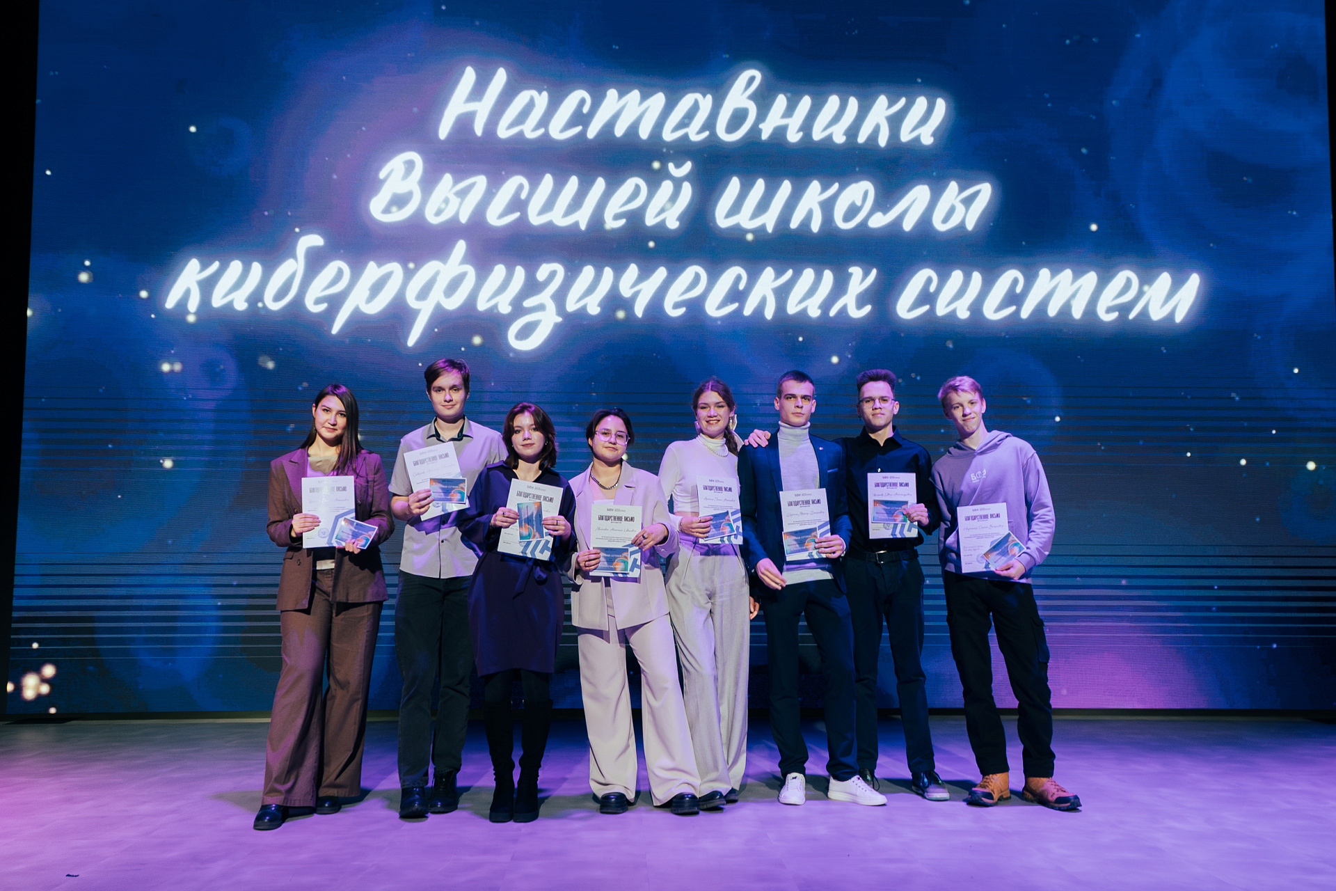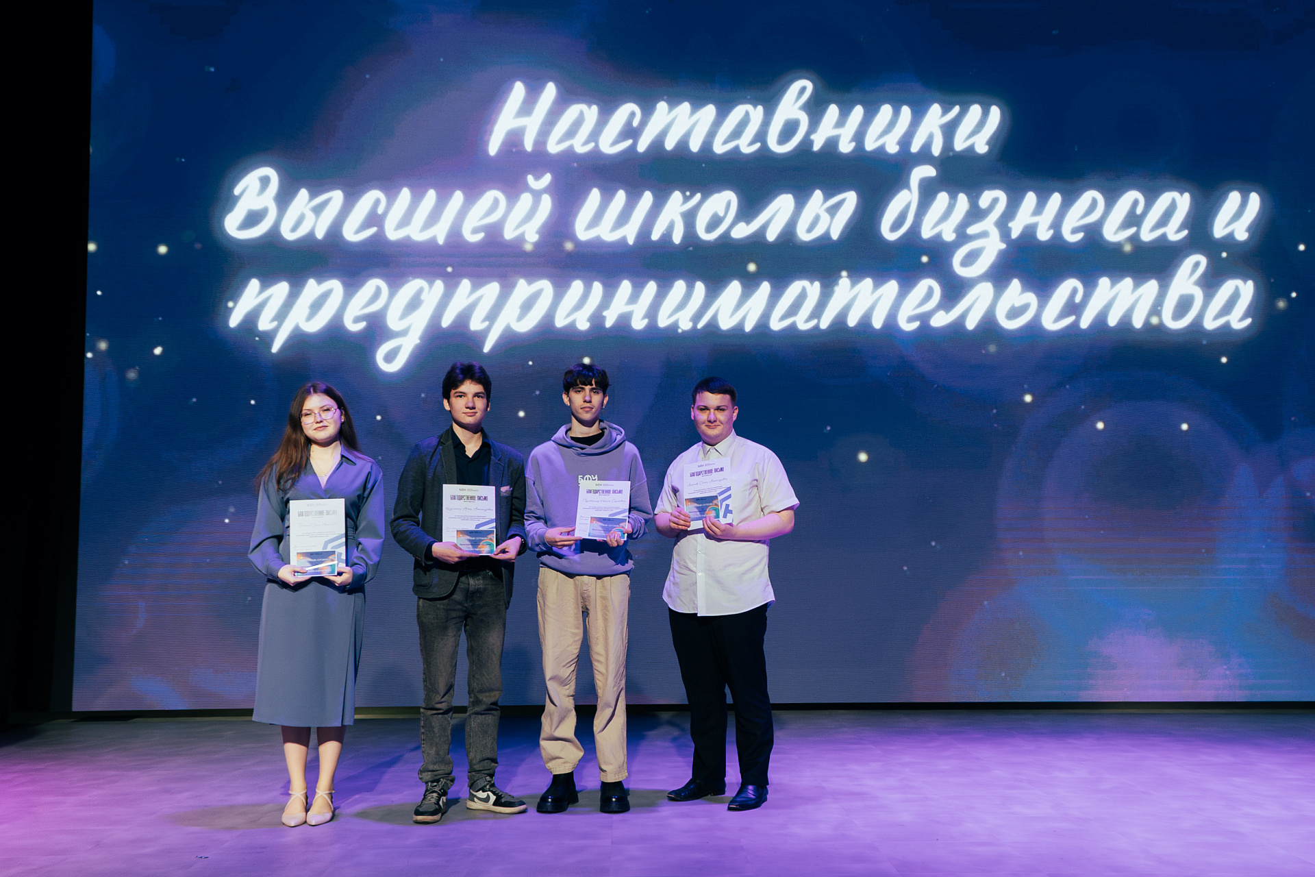| поздравил студентов на сцене и. о. ректора Максим Демин. |