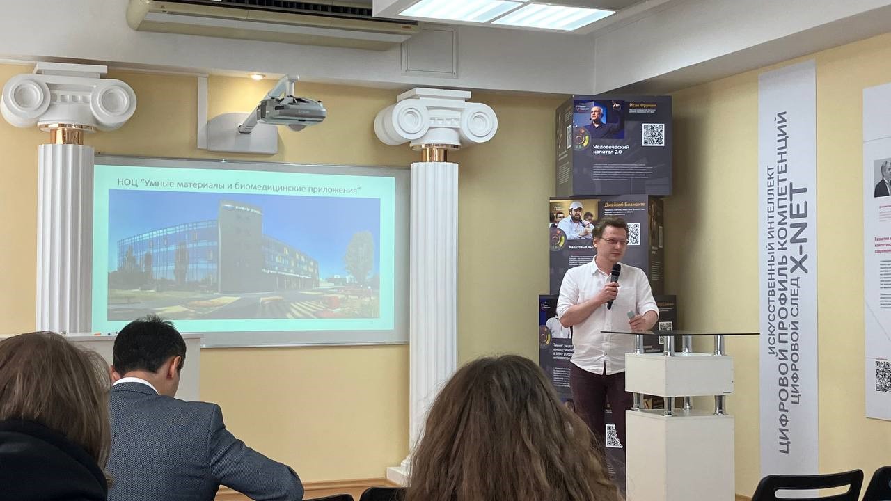 С приглашенным докладом «Наночастицы для комбинированной фототермической и магнитомеханической терапии» очно выступил научный сотрудник лаборатории магнитооптических исследований НОЦ «УМБП» Антон Аникин. Его доклад был поддержан грантом РНФ 21-72-20158.