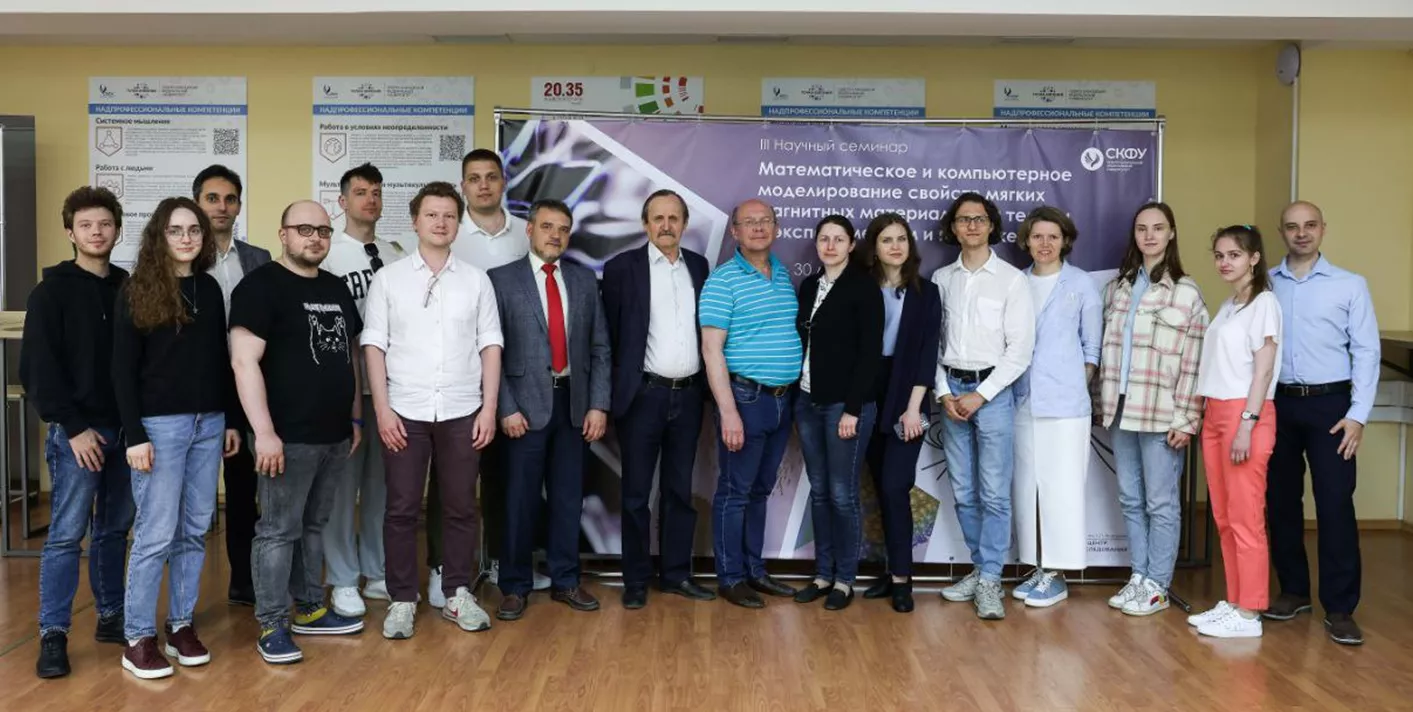 С 27 по 30 мая на базе Северо-Кавказского федерального университета в Ставрополе прошел III научный семинар «Математическое и компьютерное моделирование свойств мягких магнитных материалов: от теории к экспериментам и приложениям». Семинар проходил в смешанном формате, организаторы обеспечили возможность как очного, так и онлайн-участия в семинаре.